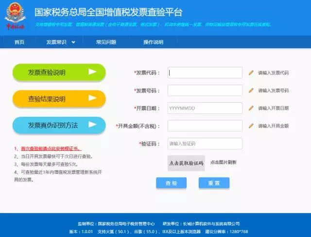 自2017年1月1日起,取得增值稅發(fā)票的單位和個(gè)人可登陸全國(guó)增值稅發(fā)票查驗(yàn)平臺(tái)(https://inv-veri.chinatax.gov.cn/),對(duì)新系統(tǒng)開(kāi)具的增值稅專(zhuān)用發(fā)票、增值稅普通發(fā)票、機(jī)動(dòng)車(chē)銷(xiāo)售統(tǒng)一發(fā)票和增值稅電子普通發(fā)票的發(fā)票信息進(jìn)行查驗(yàn)。單位和個(gè)人通過(guò)網(wǎng)頁(yè)瀏覽器平臺(tái)首次登錄平臺(tái),應(yīng)下載安裝根證書(shū)文件,查看平臺(tái)提供的發(fā)票查驗(yàn)操作說(shuō)明。