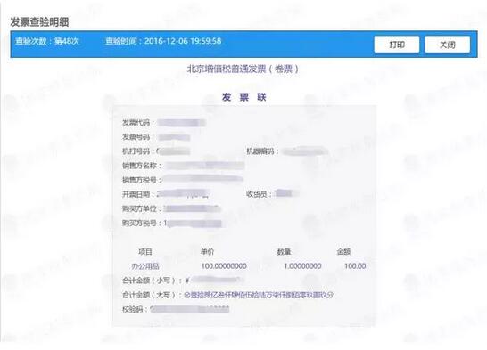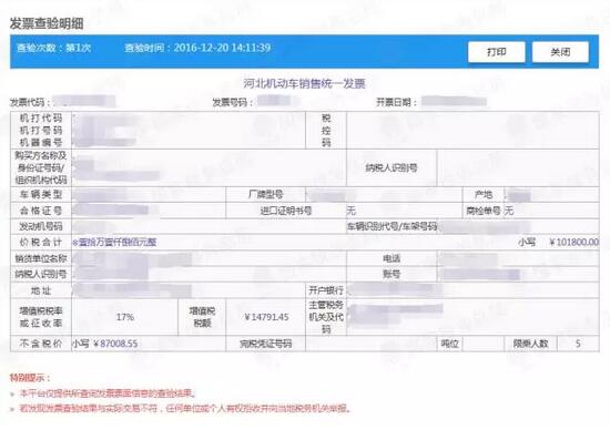 (6)本平臺(tái)僅提供所查詢(xún)發(fā)票票面信息的查驗(yàn)結(jié)果。如對(duì)查驗(yàn)結(jié)果有疑議,請(qǐng)持發(fā)票原件至當(dāng)?shù)囟悇?wù)機(jī)關(guān)進(jìn)行鑒定。
