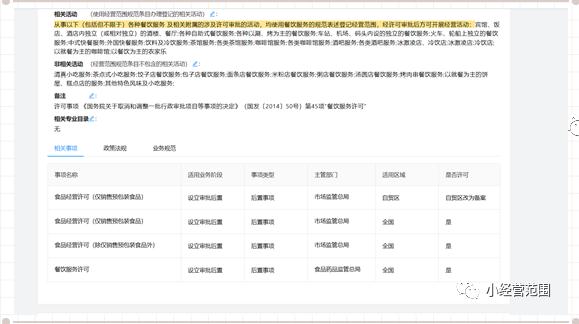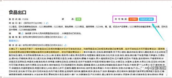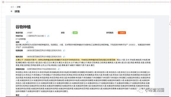詳情頁面共包含11部分內容介紹:(3)狀態(tài):分為“正!焙汀安豢捎谩眱身棥標注為“正!钡慕(jīng)營范圍規(guī)范可直接使用,標注為“不可用”的經(jīng)營范圍規(guī)范則不可選。(4)許可情況:分為許可事項、一般事項及自貿區(qū)改為備案。許可事項指的是根據(jù)該條經(jīng)營范圍表述條目指代的活動是涉企許可事項,需經(jīng)相關行業(yè)主管部門批準方可開展經(jīng)營活動;一般事項可持營業(yè)執(zhí)照直接開展經(jīng)營活動。自貿區(qū)改為備案指的是國務院在自由貿易試驗區(qū)暫時調整實施相關法律法規(guī)規(guī)定的,依法開展經(jīng)營活動。見圖8: